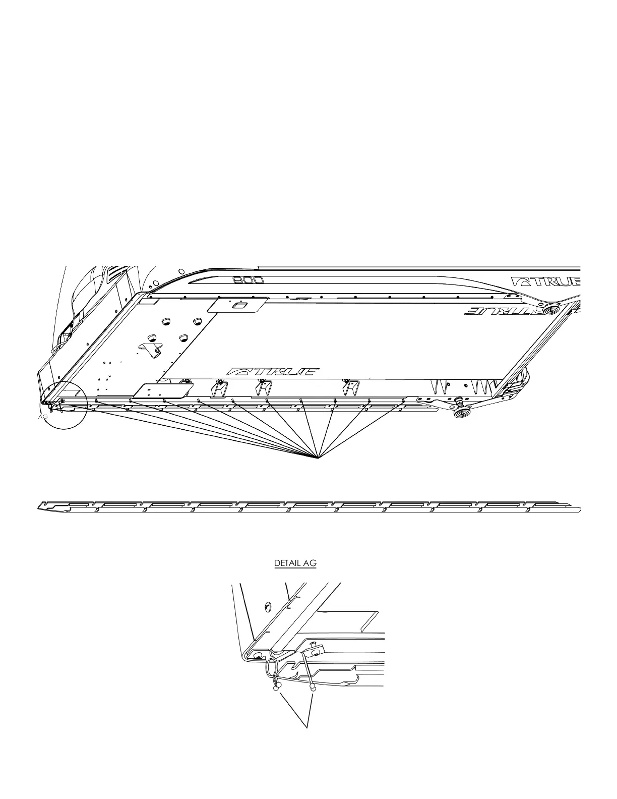 corresponding 11 slots on the power cord managment hardware between the 11 screws and the treadmill frame.