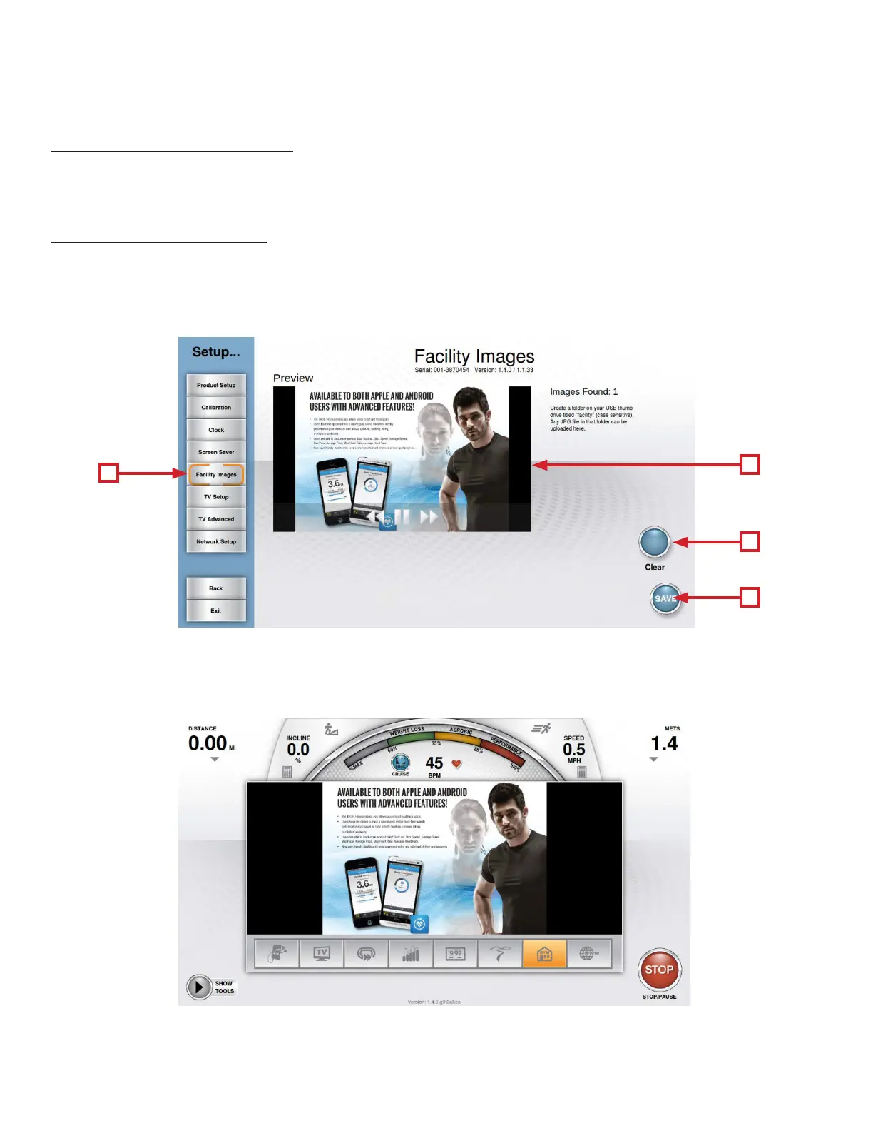 Once loaded correctly, the facility images will be displayed int he Facility Workout Data screen (as shown below).