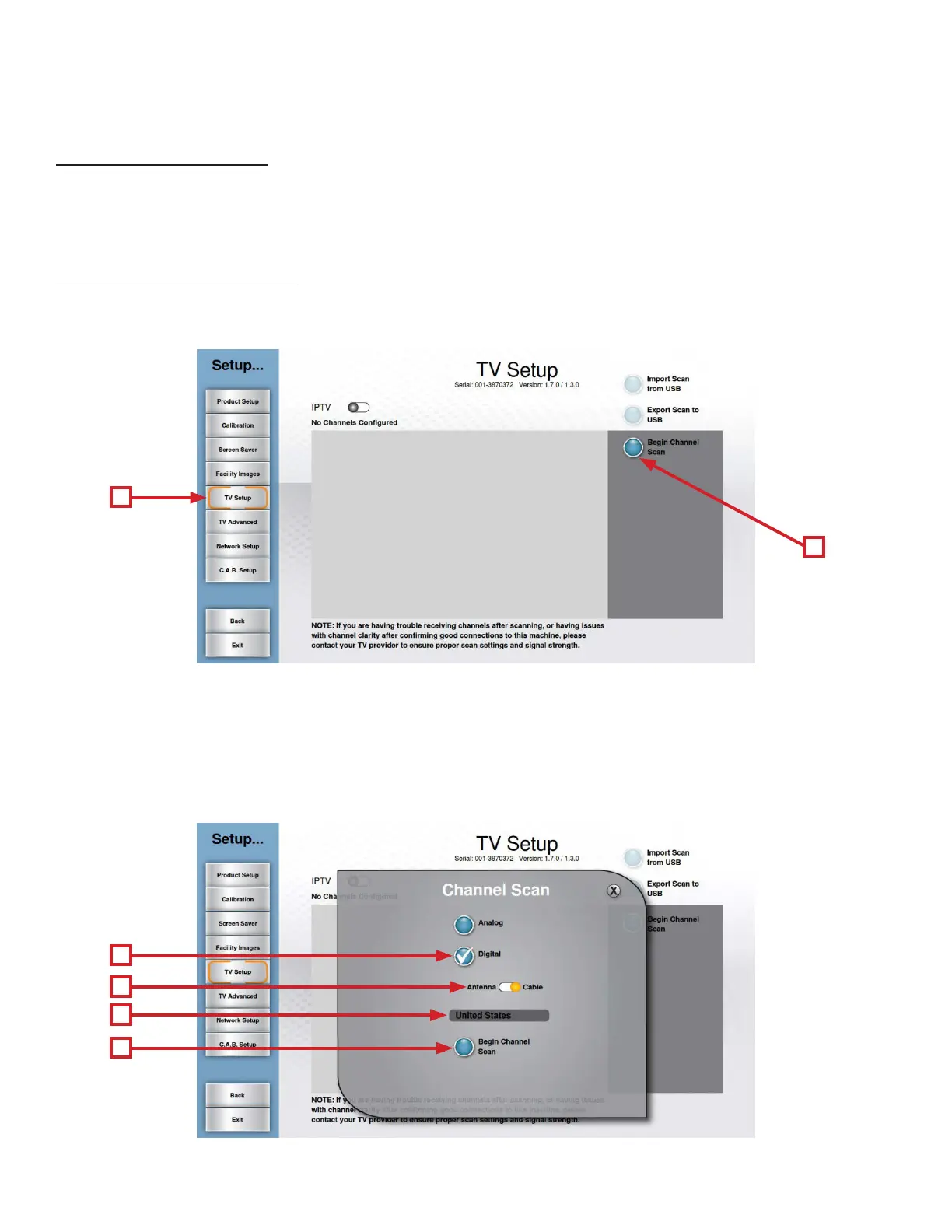 • Touch Begin Channel Scan (F) to begin scanning for channels.