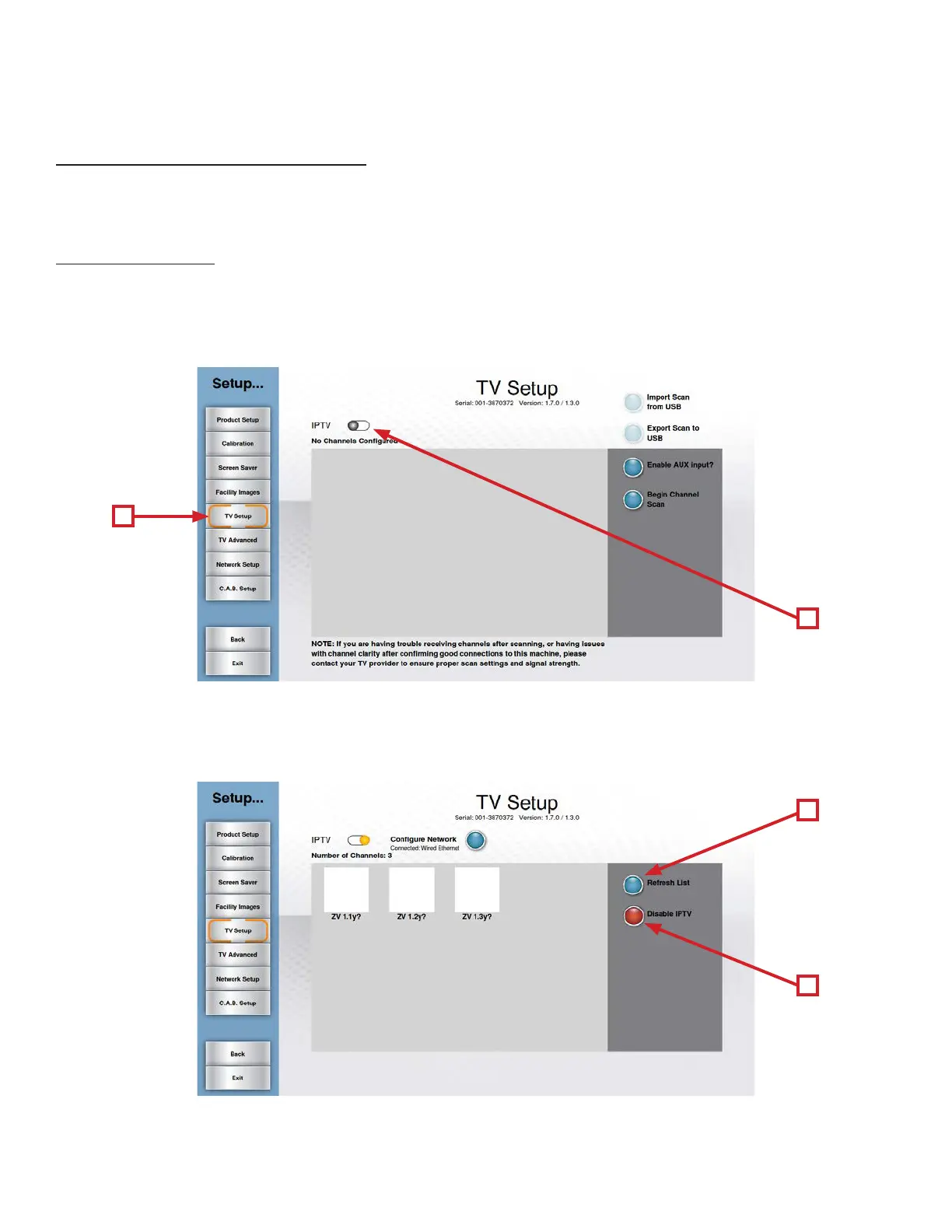 • Touch the IPTV Slider Button (B) to enable IPTV and the console will automatically search for IPTV channels.