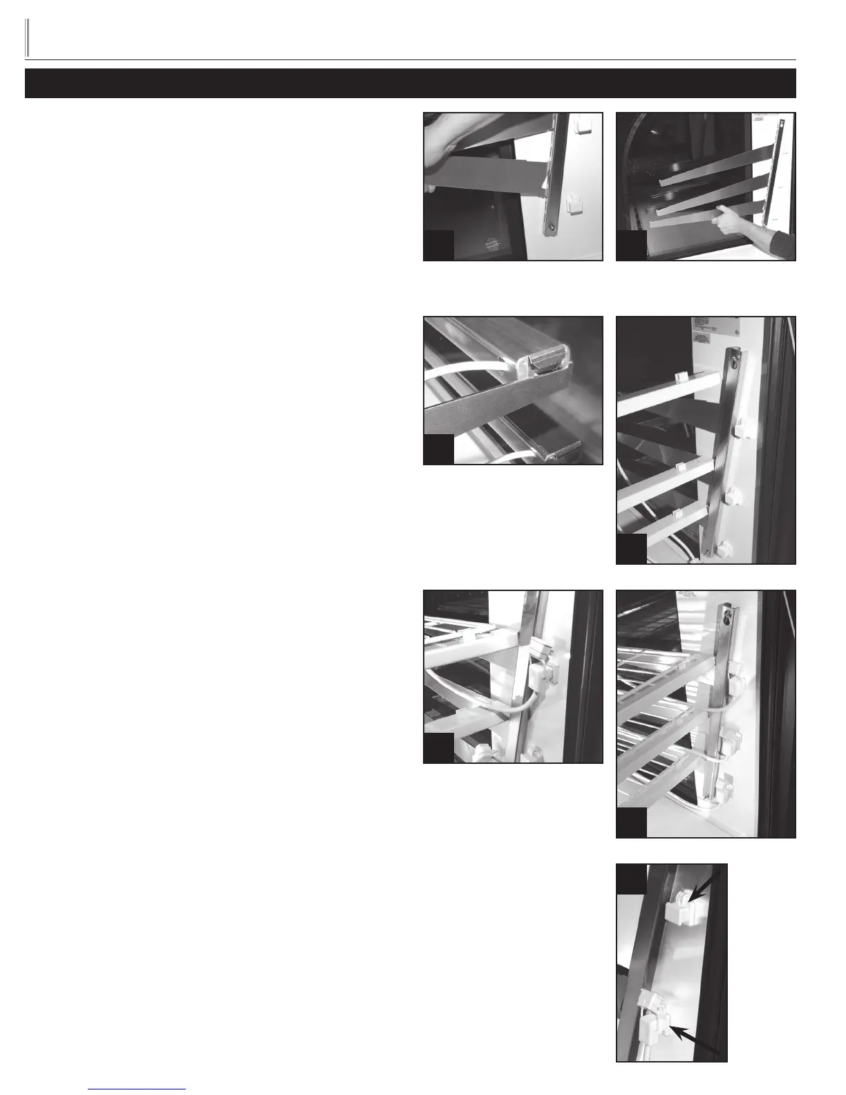 F. Locate shelves, install top shelf first. With the front lip (tray