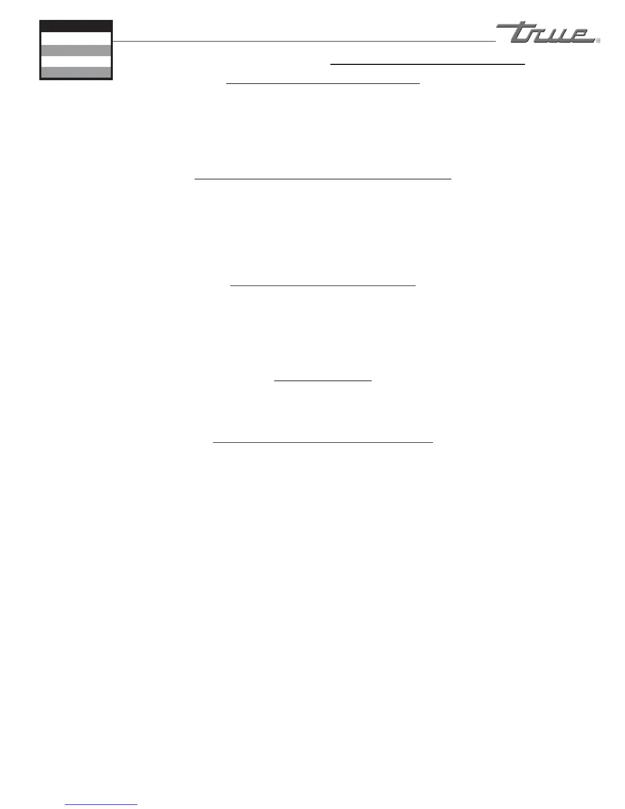 IMPROPER ELECTRICAL CONNECTIONS. TRUE IS NOT RESPONSIBLE FOR THE REPAIR OR REPLACEMENT OF FAILED OR DAMAGED COMPONENTS RESULTING
