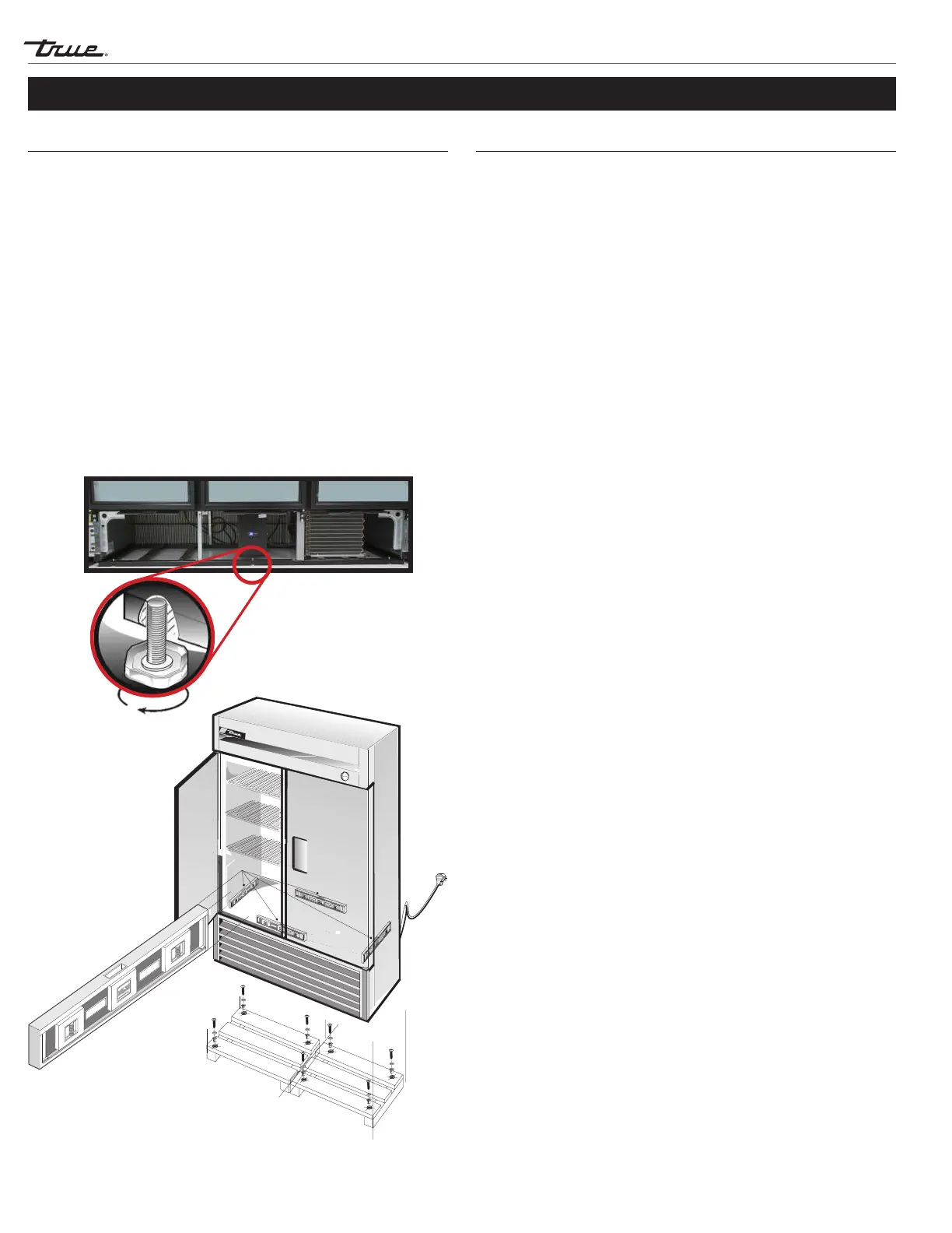 Proper leveling of your TRUE cooler is critical to operating success