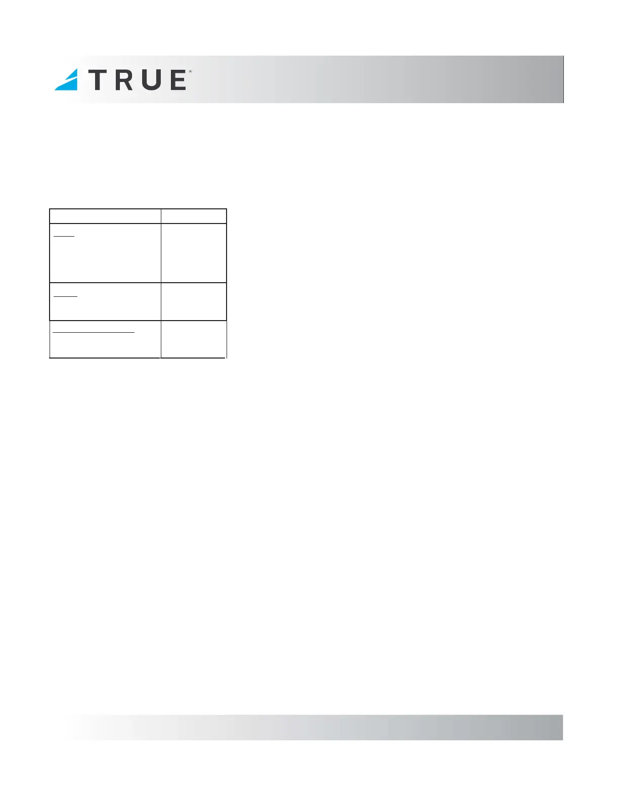TRUE Limited Warranty service may be obtained by contacting the