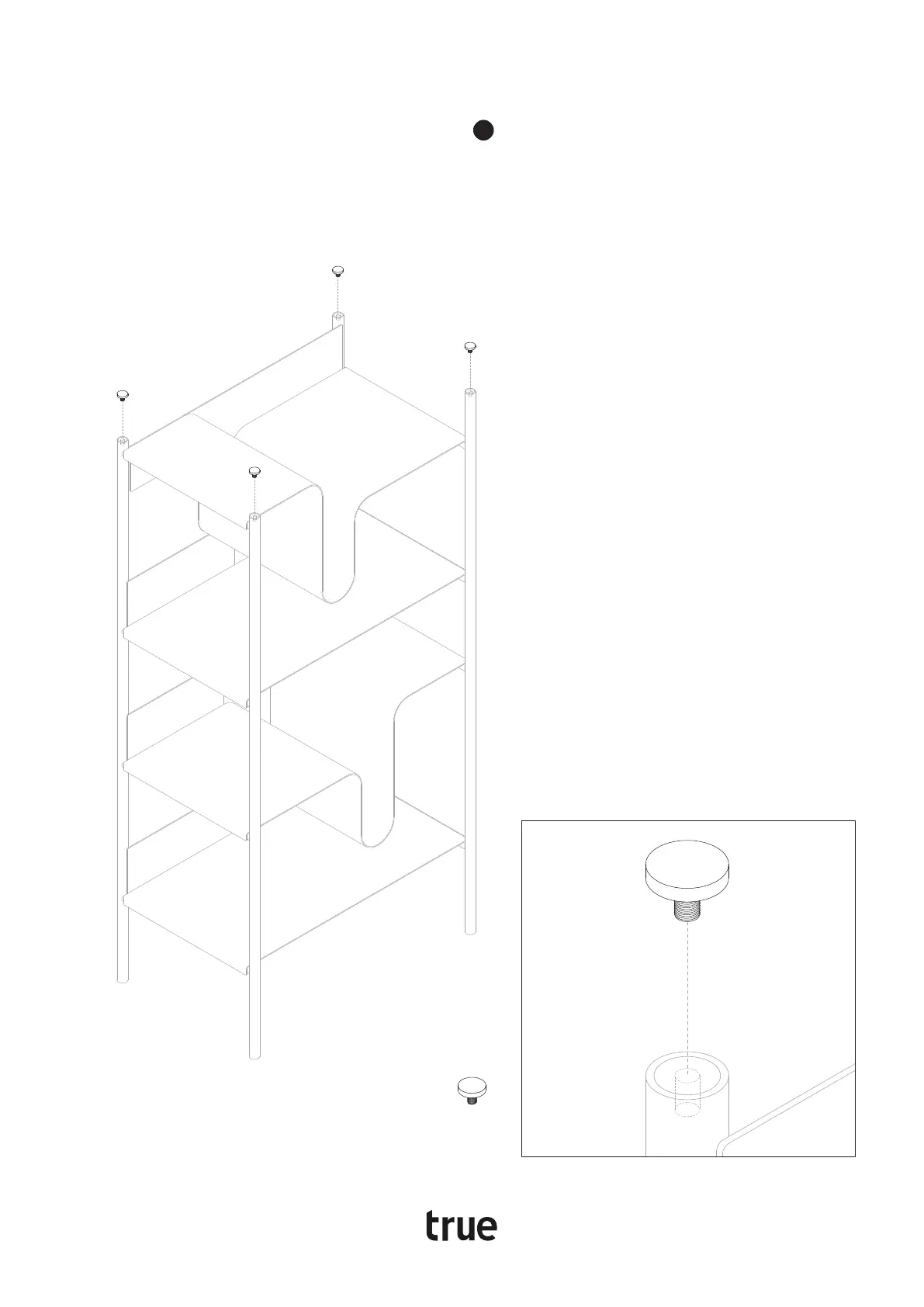 If you have a single Wave bookshelf, insert the 4 elements E in the upper part of the 4 legs.