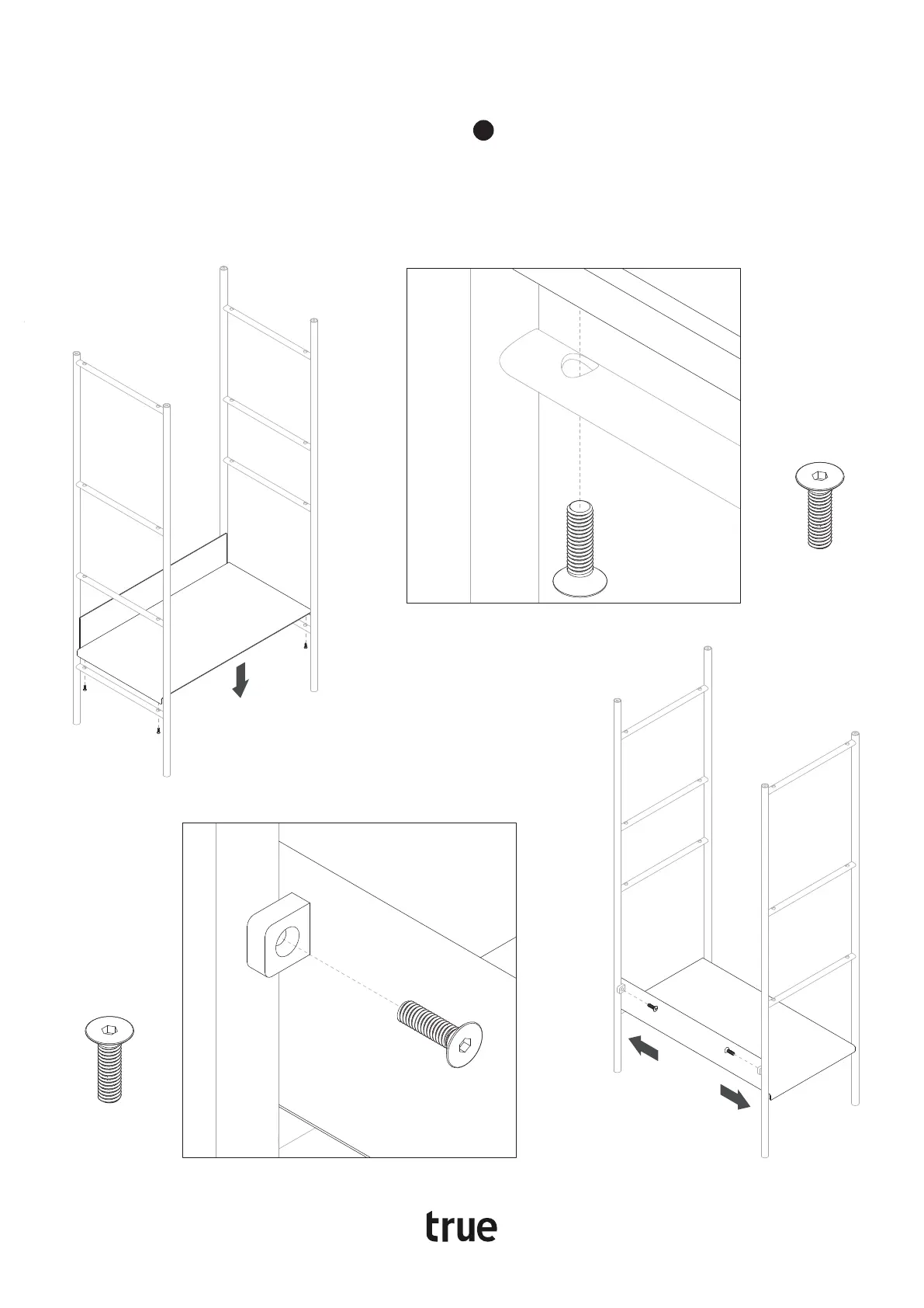 Fixez l‘étagère B aux 2 éléments A avec les 6 vis M5x12mm.