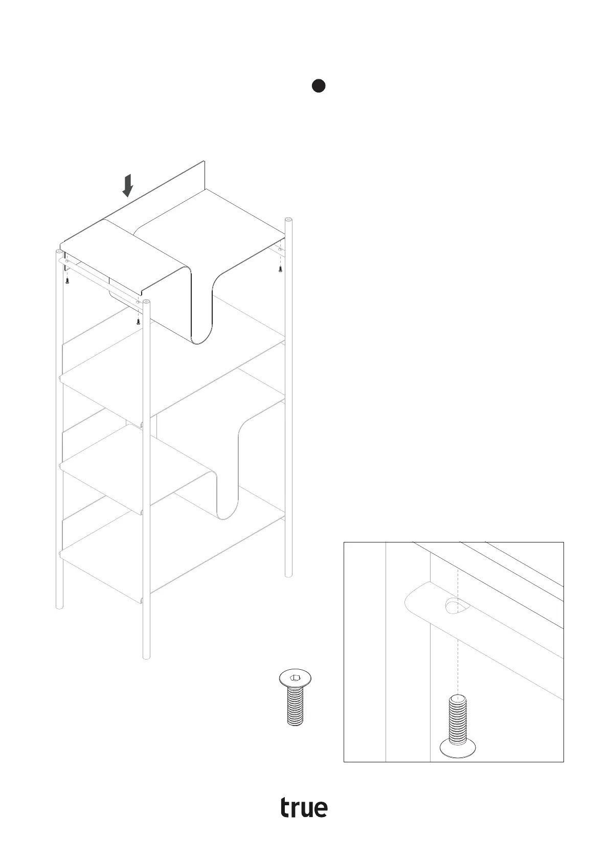 Secure shelf C to the 2 elements A through the 4 M5x12mm screws.