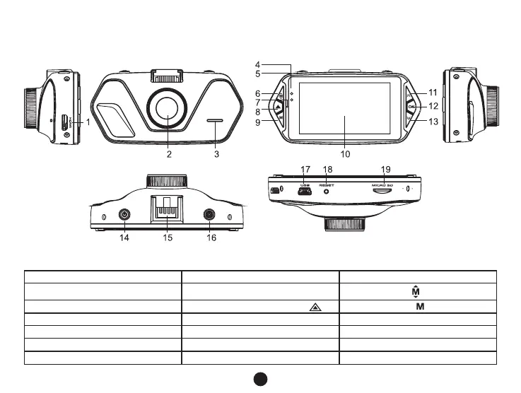 4. Svetlo nahrávania (modré) 5. Svetlo nabíjania (červené) 6. Tlačidlo Menu