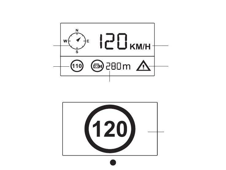 Ha a haladási sebesség magasabb, mint az aktuálisan megengedett sebesség, az alábbi kép jelenik meg.