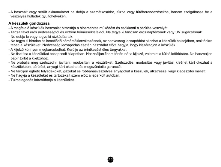 - Tartsa távol erős nedvességtől és extrém hőmérsékletektől. Ne tegye ki tartósan erős napfénynek vagy UV sugárzásnak.