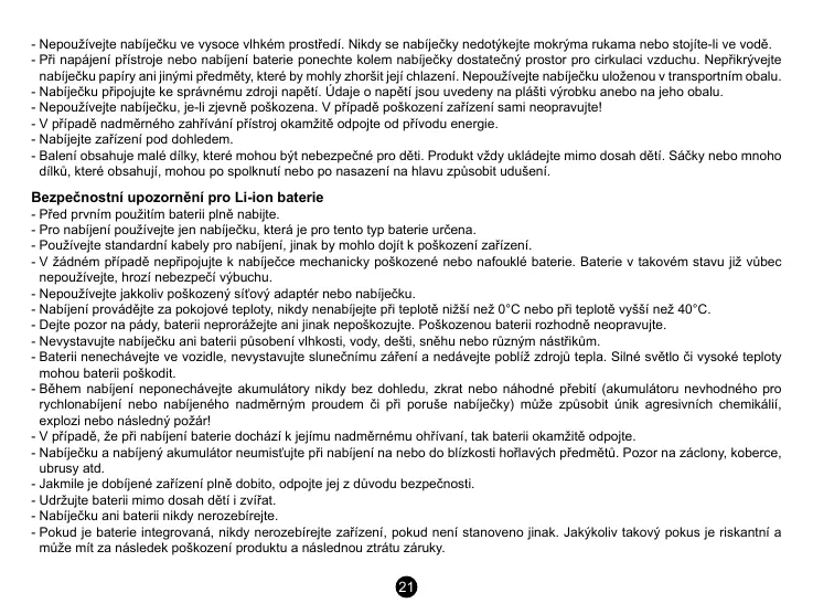 - Pro nabíjení používejte jen nabíječku, která je pro tento typ baterie určena.