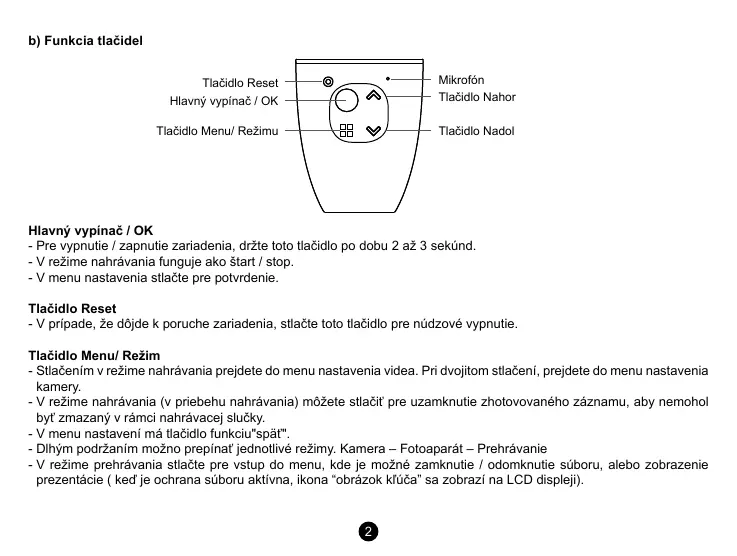 b) Funkcia tlačidel
