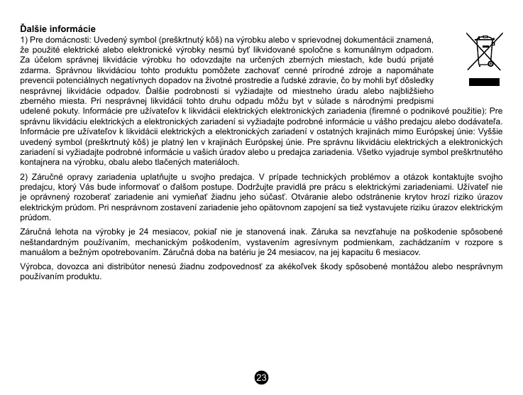 uvedený symbol (preškrtnutý kôš) je platný len v krajinách Európskej únie. Pre správnu likvidáciu elektrických a elektronických