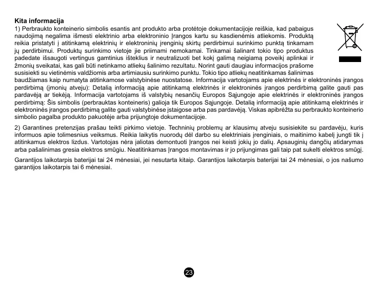 naudojimą negalima išmesti elektrinio arba elektroninio Įrangos kartu su kasdienėmis atliekomis. Produktą