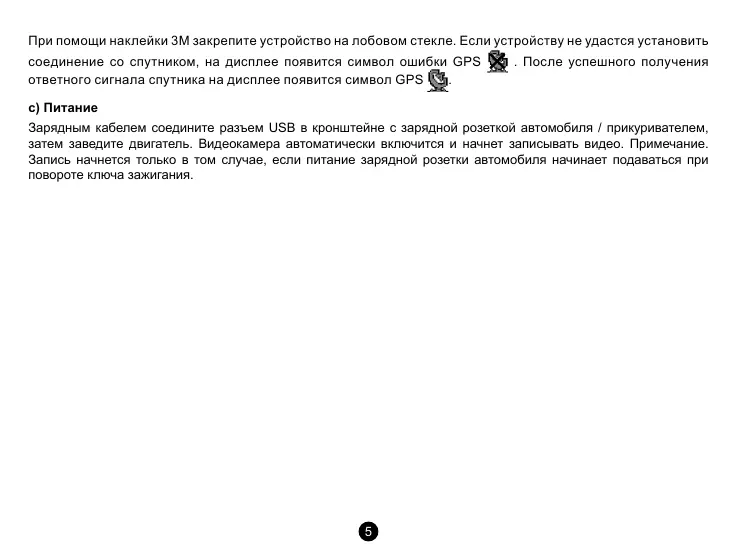 соединение со спутником, на дисплее появится символ ошибки GPS . После успешного получения