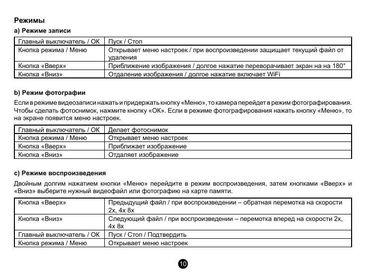 Кнопка режима / Меню Открывает меню настроек / при воспроизведении защищает текущий файл от