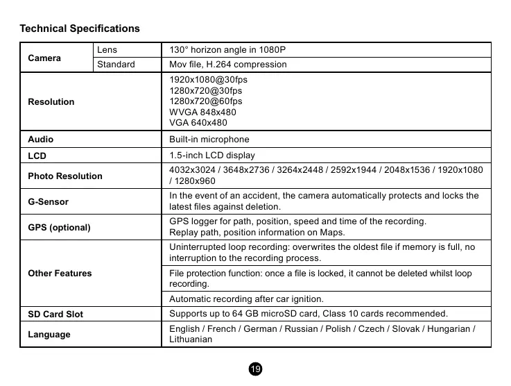 English / French / German / Russian / Polish / Czech / Slovak / Hungarian /