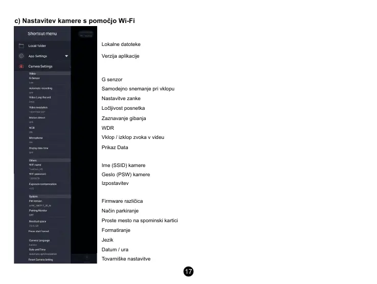 c) Nastavitev kamere s pomočjo Wi-Fi