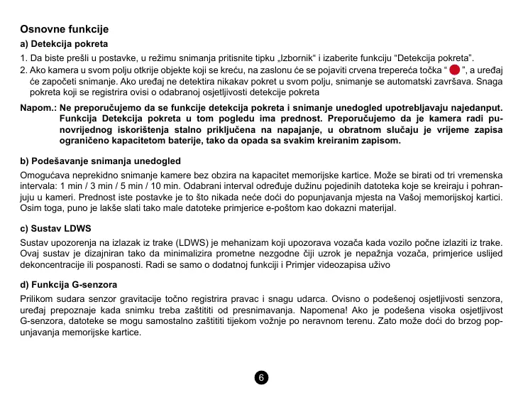 dekoncentracije ili pospanosti. Radi se samo o dodatnoj funkciji i Primjer videozapisa uživo