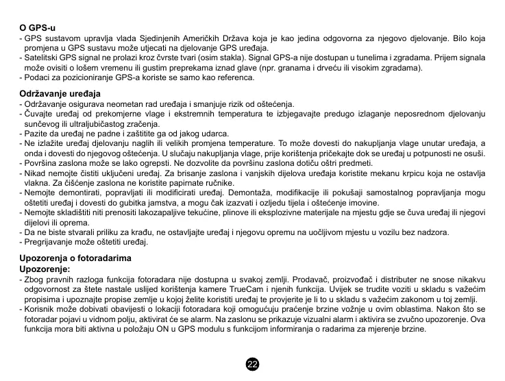 odgovornost za štete nastale uslijed korištenja kamere TrueCam i njenih funkcija. Uvijek se trudite voziti u skladu s važećim