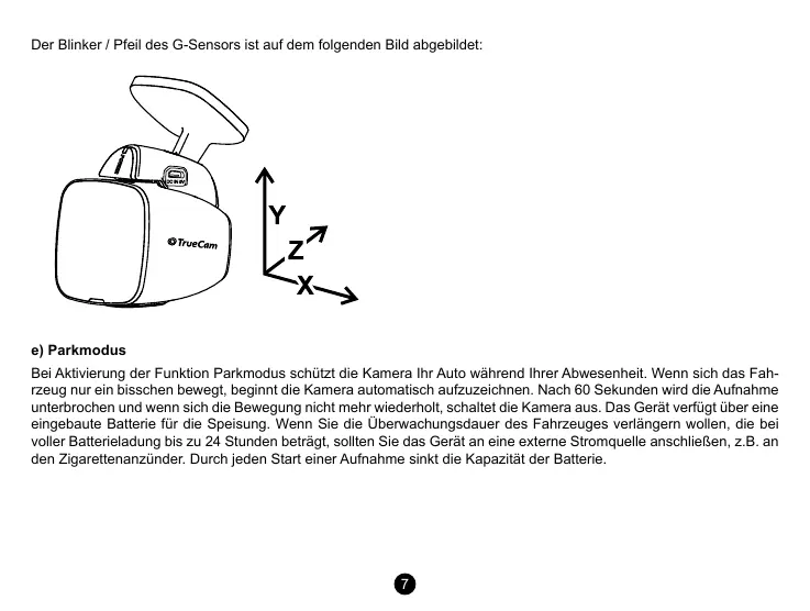 Bei Aktivierung der Funktion Parkmodus schützt die Kamera Ihr Auto während Ihrer Abwesenheit. Wenn sich das Fah-