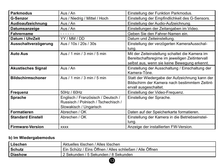 Aus / 1 min / 3 min / 5 min Mit der Zeiteinstellung schaltet die Kamera im