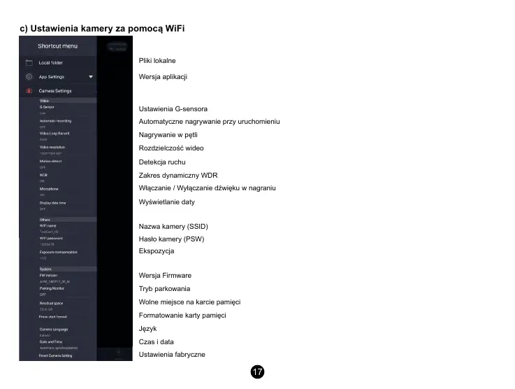 c) Ustawienia kamery za pomocą WiFi