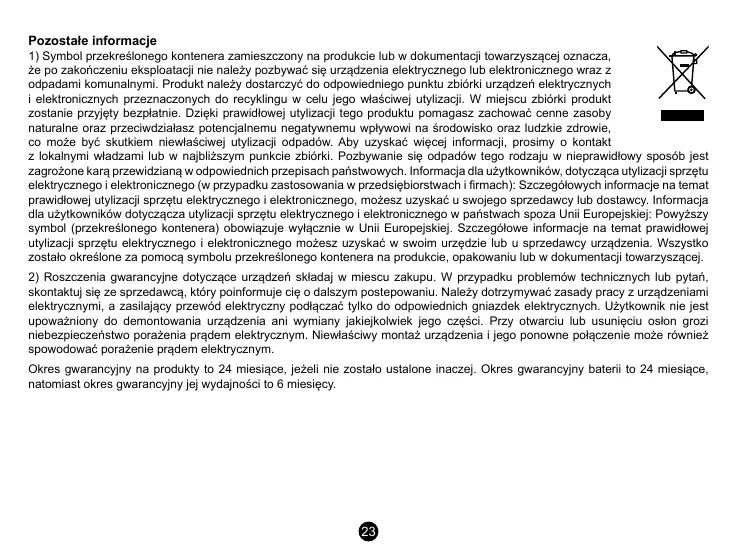 1) Symbol przekreślonego kontenera zamieszczony na produkcie lub w dokumentacji towarzyszącej oznacza,