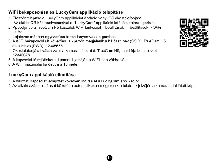 WiFi bekapcsolása és LuckyCam applikáció telepítése