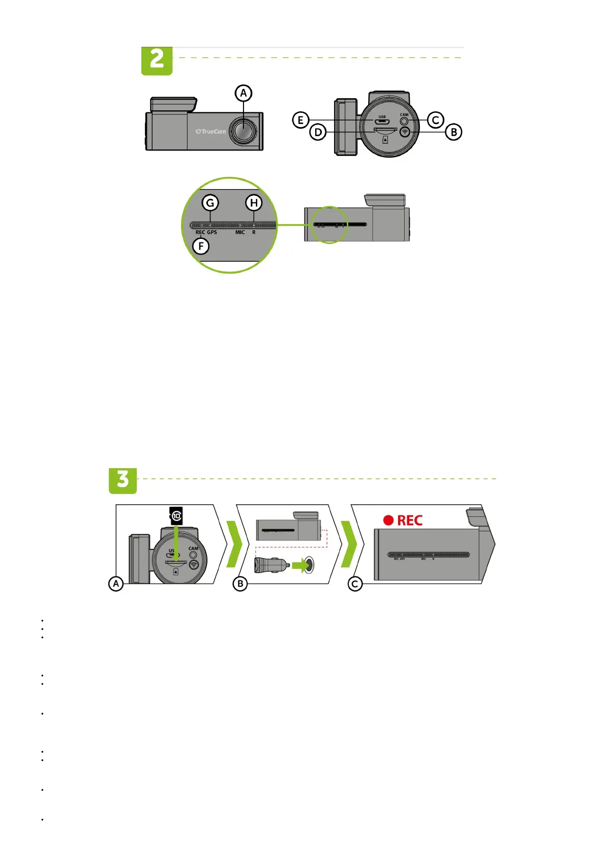 (B) Insert the adapter into the car cigarette lighter and connect it to the camera using the USB cable.