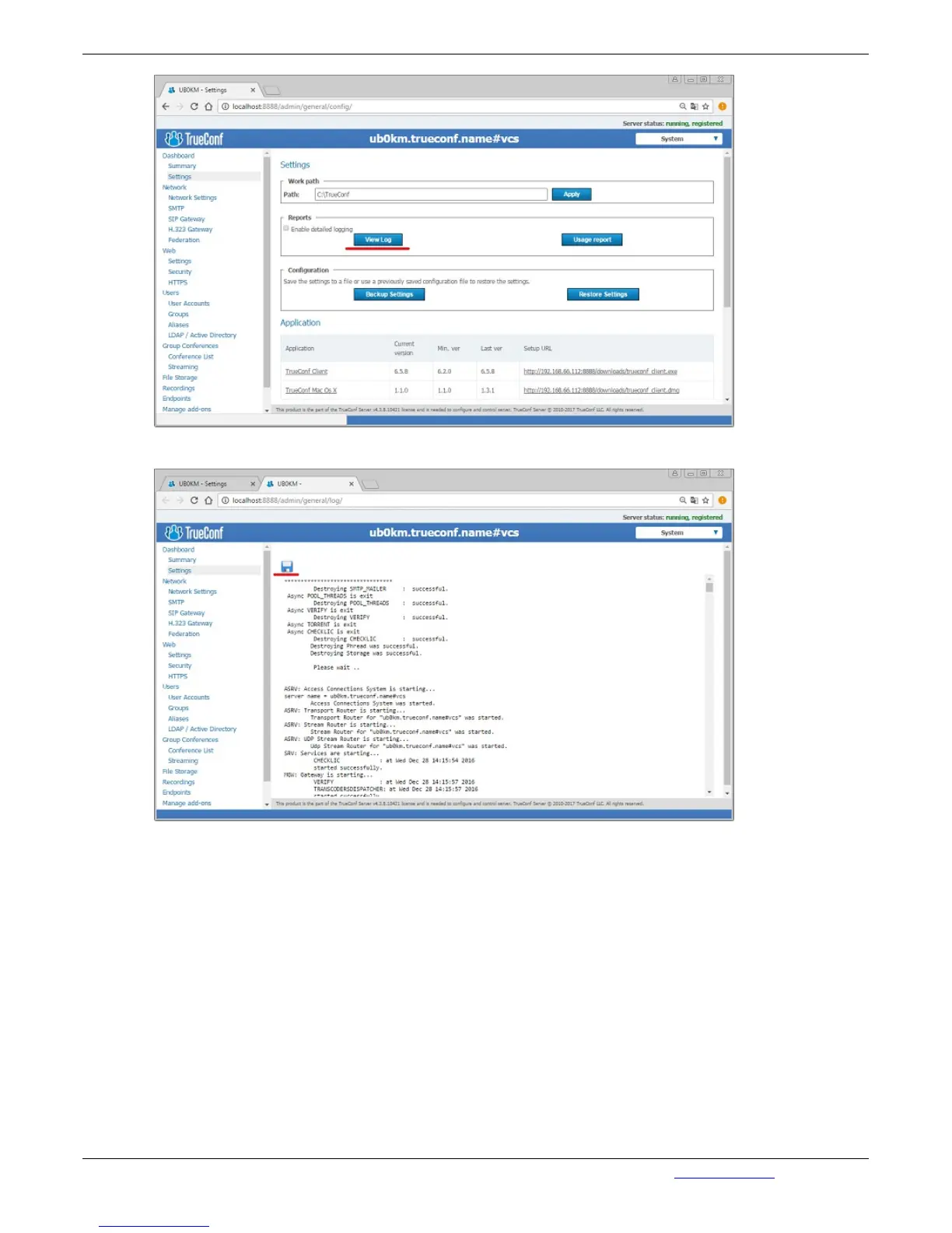 Send this report to our Support Team via e-mail: sales@trueconf.com or contact us by phone: 1-347-