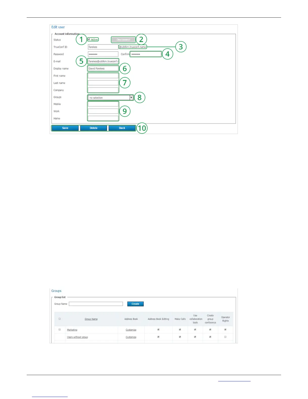 2. Mandatory field. It is used for authorization and calls. Full TrueConf ID contains this TrueConf