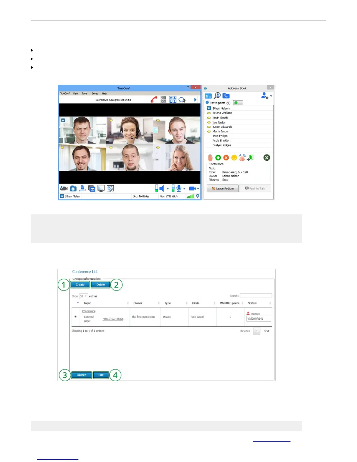 Note: When the conference is getting started the administrator chooses the user who will be the Host.