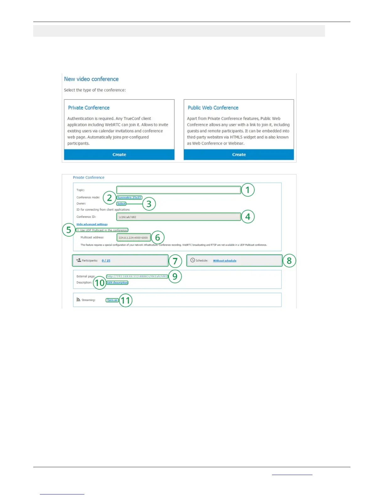 3. Owner (Conference owner) choice from the list of users field (see Owner section).