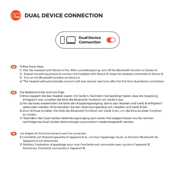 4) •The headset will automatically connect With two devices next time after the first time dual device connection.