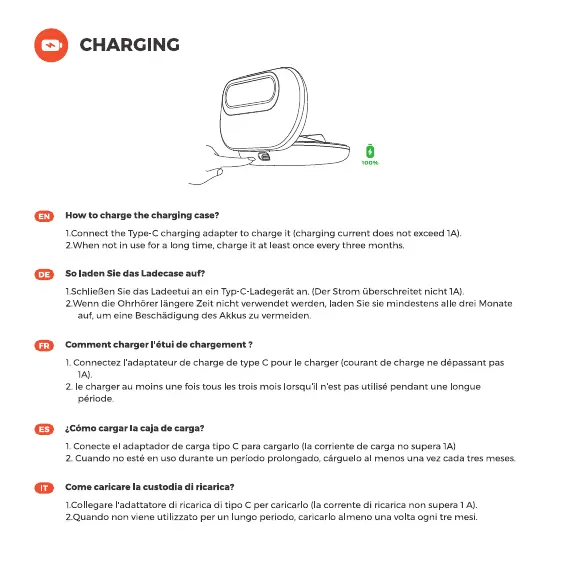2_Wenn die Ohrhörer lingere Zeit nicht verwendet werden, laden Sie Sie mindestens al Ie drei Monate