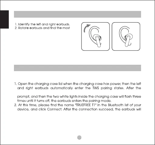 TRUEFREE T1 - Pairing & Connecting; Automatic TWS Pairing; Connecting to Device