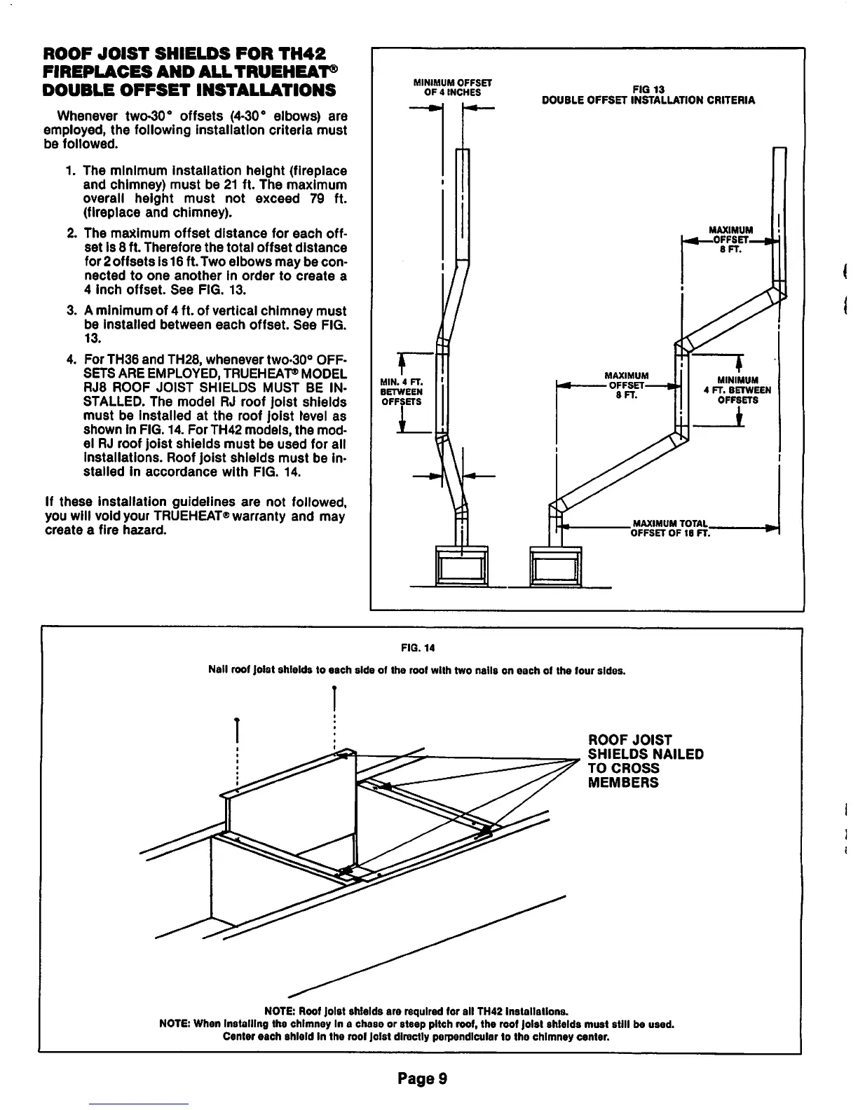 Trueheat TH42 - Double Offset Installations; Roof Joist Shield Requirements