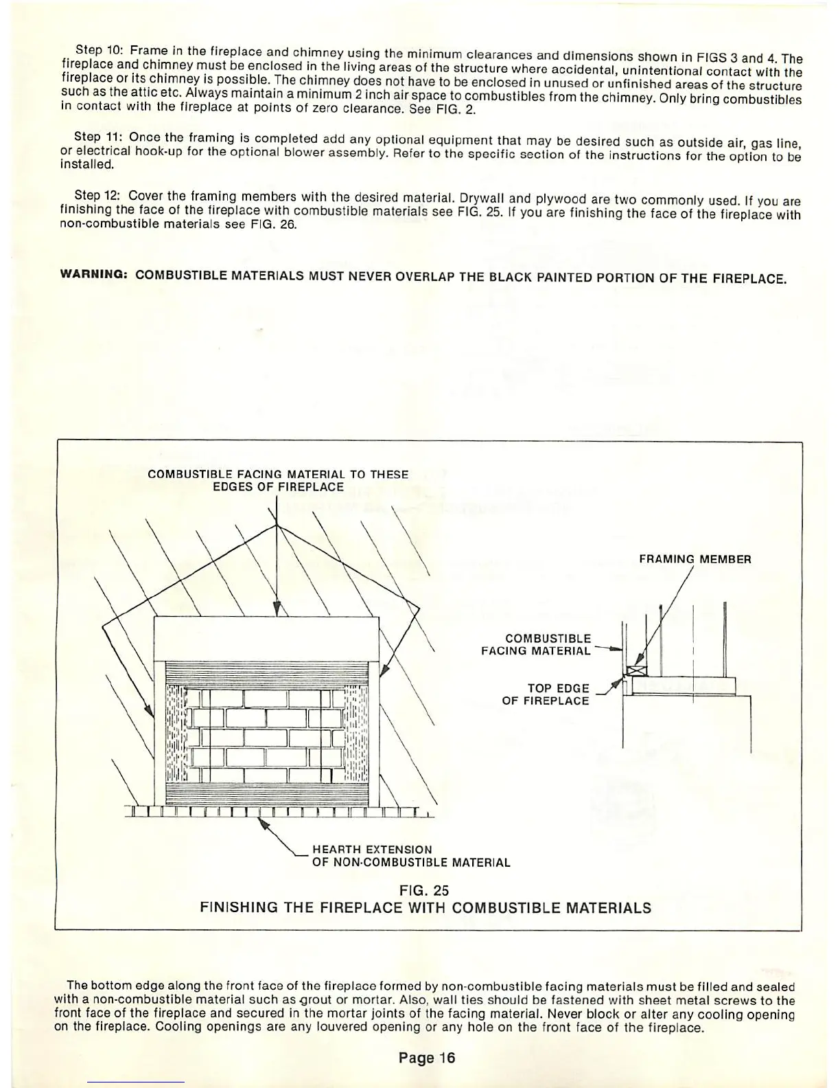 mortar joints of the facing material. Never block or alter any cooling opening