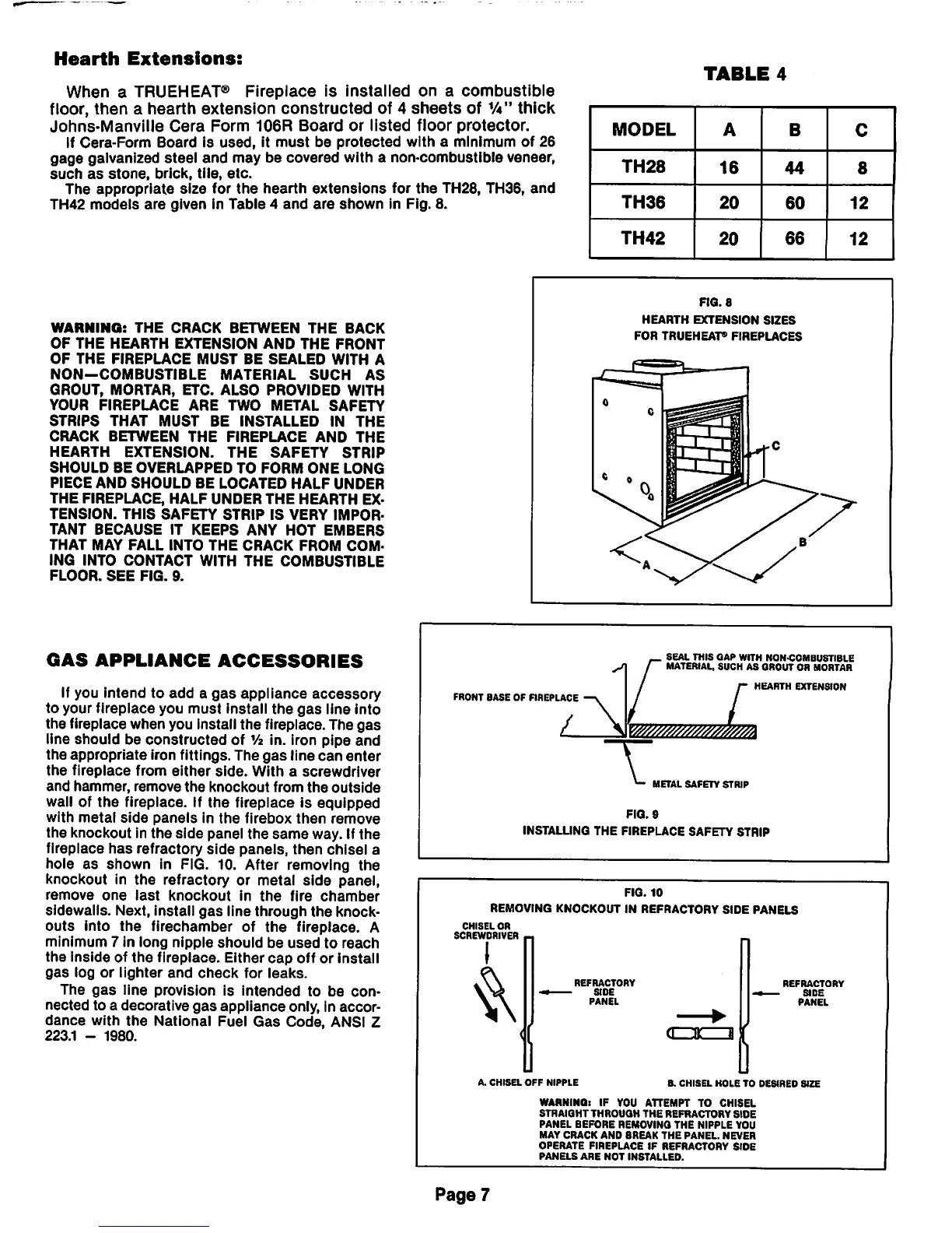 Trueheat TH42 - Hearth Extensions; Hearth Extension Sizing; Gas Appliance Accessories; Gas Line Installation