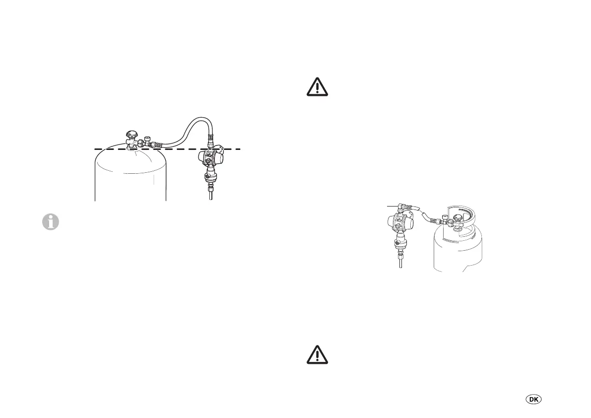 Højtryksslangen skal trækkes i et konstant fald til flaskeventilen.
