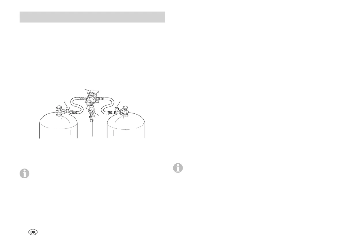 – Tilslut gasflaskerne og kontroller, at alle slangeforskruninger