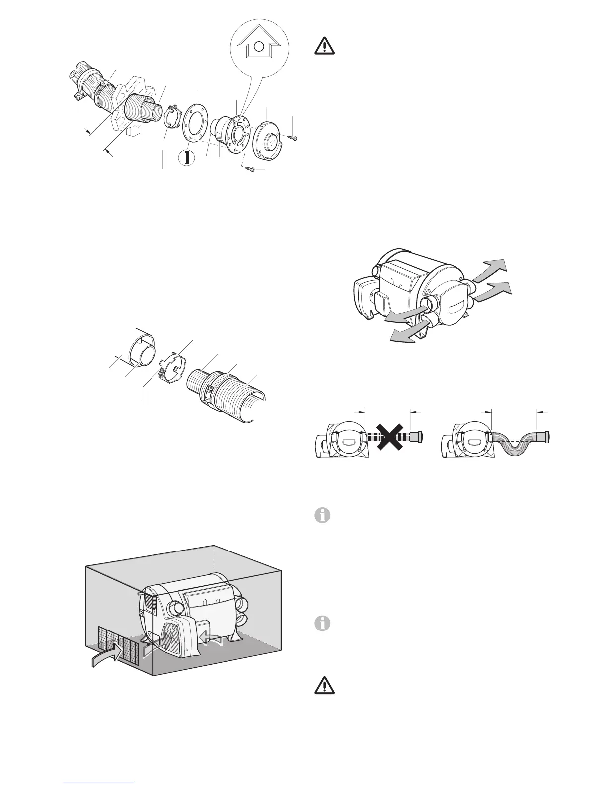 With a duct length of less than 2 m the air outlet must not be