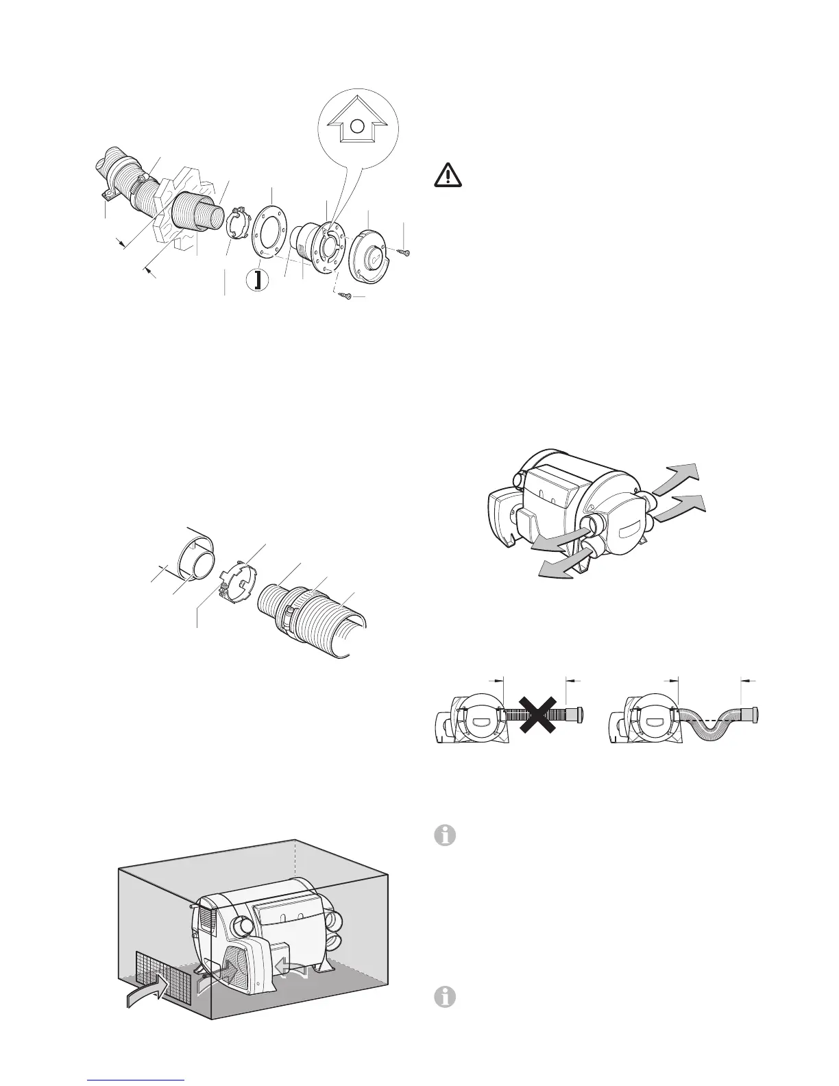– Houd u bij de montage van de warmeluchtverdeling aan