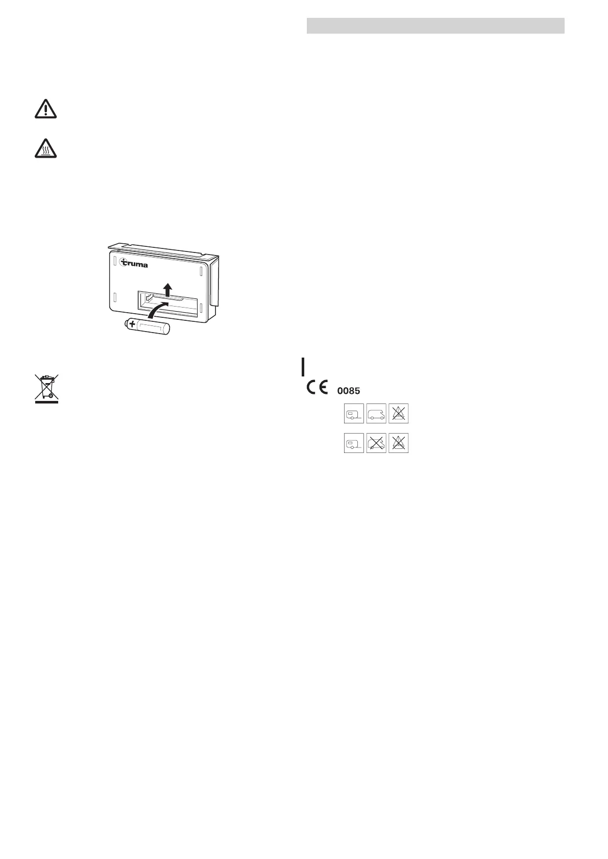 Dispose of the appliance and battery in the auto ignitor sepa-