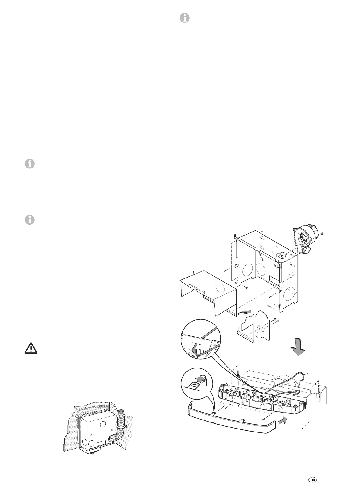 – Skru ventilatoren (20) fast på installationskassen med