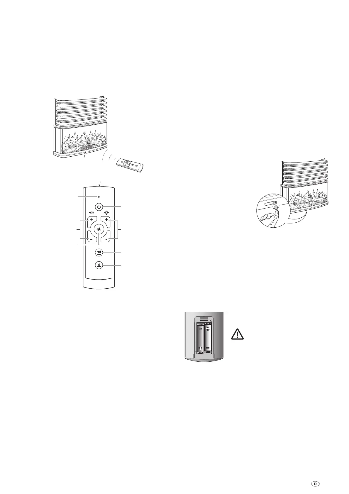 Mit Taste (a) „Ein / Aus“ der Fernbedienung das Kaminfeu-
