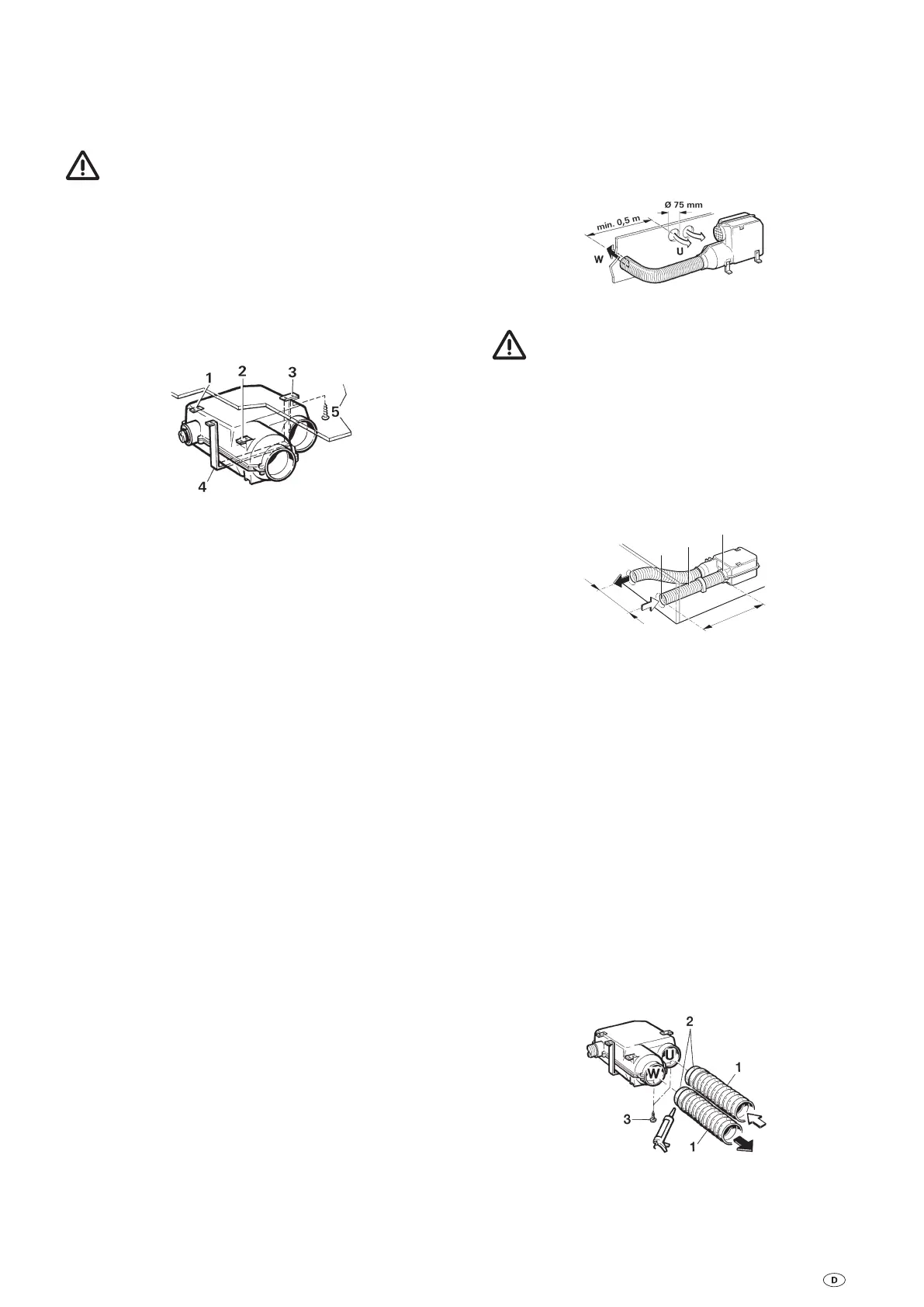 gen der Heizung (W + U) schieben. Mit 2 Blechschrauben (3)