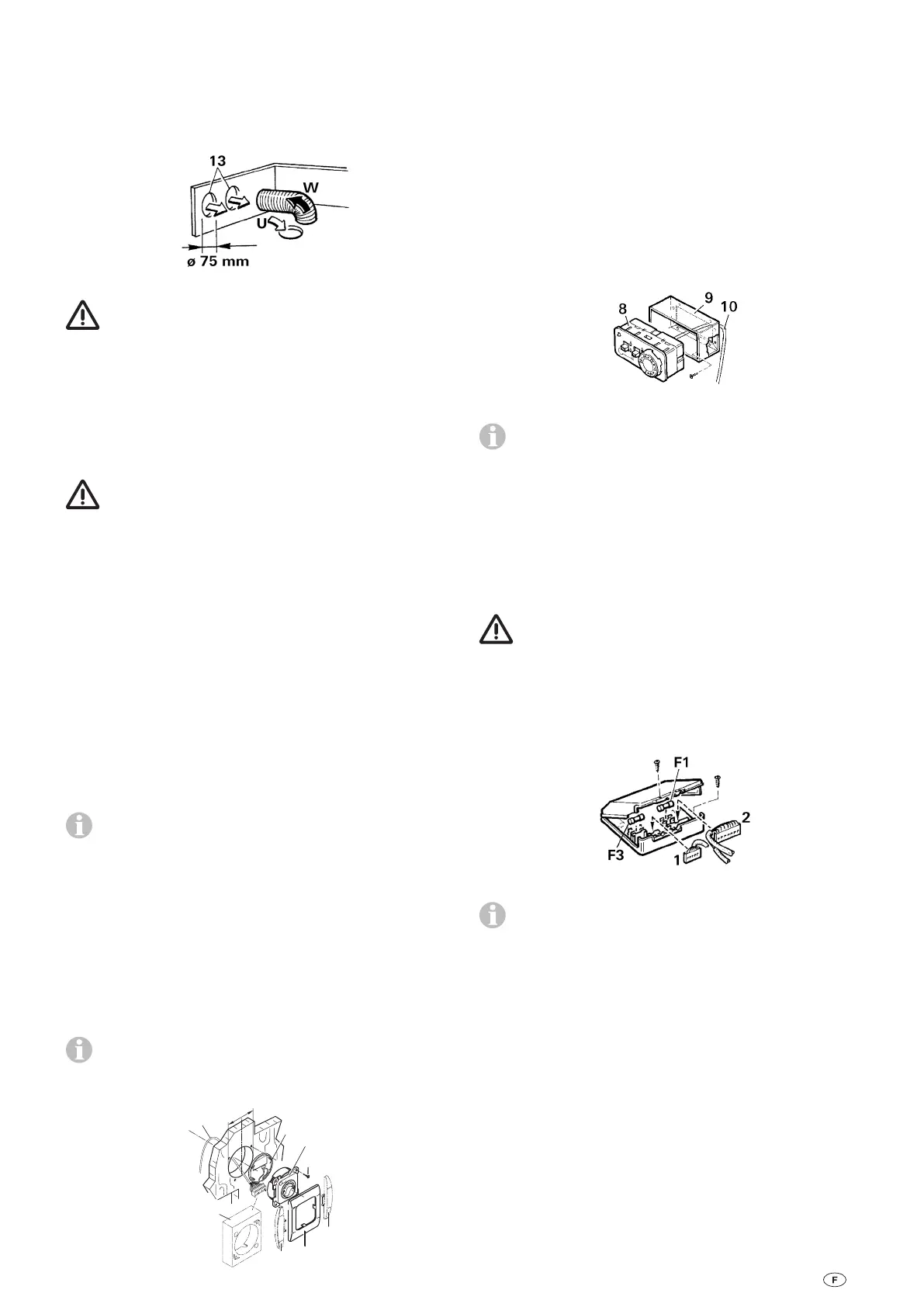 percer dedans deux trous(13) de respectivement Ø 75 mm ou