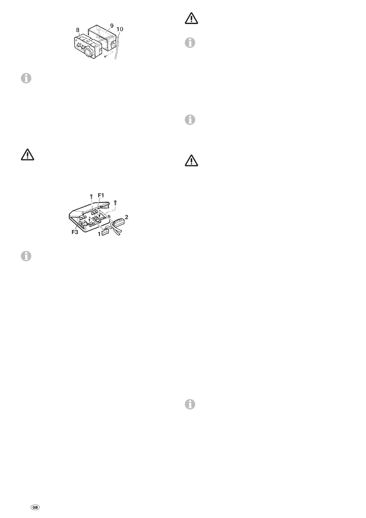 (central electrical system 5 – 10 A) using the 2 x 1.5 mm²